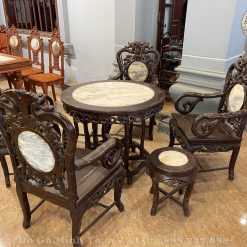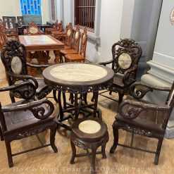 - Kích thước: Bàn ĐK 88cm cao 75cm, ghế rộng 60cm sâu 50cm cao 105cm, đôn ĐK 36cm cao 43cm