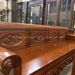 Với tông màu chủ đạo là màu cánh dán cam giúp cho Bộ Trường Kỷ Gỗ Hương Đá 3 Món có chút xu hướng hiện đại. Trên thị trường có rất nhiều nhu cầu, và có rất nhiều người thích một bộ trường kỷ có tông màu sáng, hiện đại và trẻ trung. Bộ bàn ghế được đục chạm và điêu khắc hết sức tinh xảo bởi những người thợ có kinh nghiệm lâu năm trong nghề.
