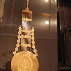 - Tên sản phẩm: Đồng hồ quả lắc gỗ gụ thiếc vàng