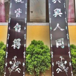 - Tên sản phẩm: Câu đối cuốn thư khảm tích chữ gỗ gụ