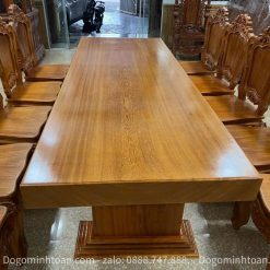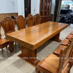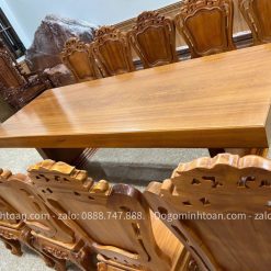 Bàn ăn hoàng gia gõ đỏ 10 ghế 1 bàn bàn liền tấm dày 15p