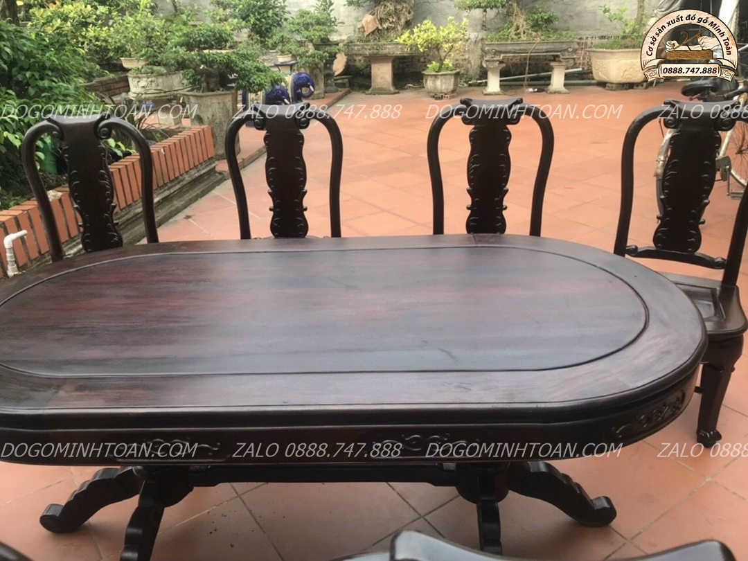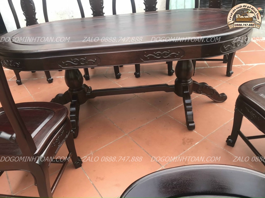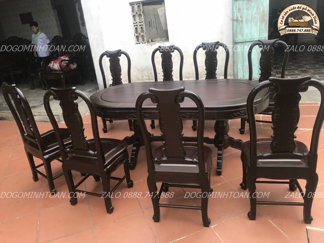 Bộ Bàn Ăn Gỗ Gụ Mật 8 ghế 1 Bàn Siêu Đẹp Hàng Dày