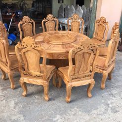 Bộ bàn ghế ăn tròn xoay 8 ghế gỗ gõ là một trong những bộ bàn ghế độc đáo tại đồ gỗ Minh Toàn. Bộ bàn ăn này được làm từ chất liệu gỗ gõ tự nhiên cao cấp thế nên nó mang vẻ đẹp rất sáng và đẹp với vân gỗ cực kỳ lạ mắt. Hơn nữa bộ bàn ăn này có độ chắc và độ bền cực cao và có giá trị theo thời gian.