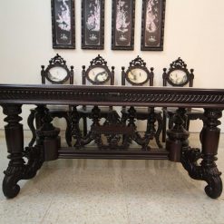- Tên sản phẩm: Bộ bàn ghế ăn cù lá 8 ghế gỗ gụ Louis