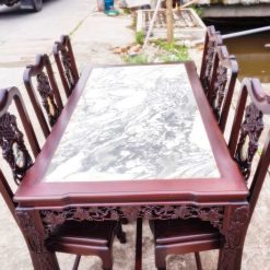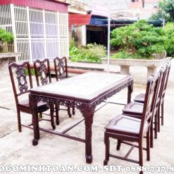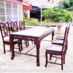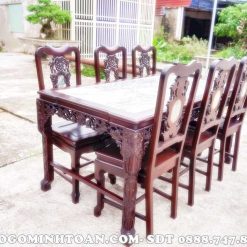 BA23 Bộ bàn ghế ăn đục nho 6 ghế gỗ gụ gia lai ( Anh Hưng, Sài Gòn )