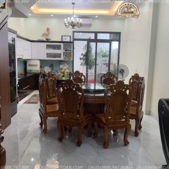 Bộ bàn ghế ăn tròn xoay 8 ghế gỗ gõ là một trong những bộ bàn ghế độc đáo tại đồ gỗ Minh Toàn. Bộ bàn ăn này được làm từ chất liệu gỗ gõ tự nhiên cao cấp thế nên nó mang vẻ đẹp rất sáng và đẹp với vân gỗ cực kỳ lạ mắt. Hơn nữa bộ bàn ăn này có độ chắc và độ bền cực cao và có giá trị theo thời gian.