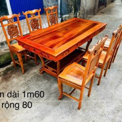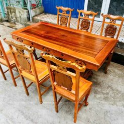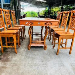 Bộ bàn ghế ăn lối cổ 6 ghế 1 bàn nhỏ gọn gỗ gụ mật