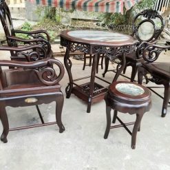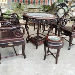 - Kích thước:Bàn ĐK 88cm cao 75cm, ghế rộng 60cm sâu 50cm cao 105cm, đôn ĐK 36cm cao 43cm