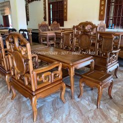 Bộ ghế móc mỏ 6 món được thiết kế theo phong cách lối xưa nhưng vẫn toát lên vẻ đẹp hiện đại, nhẹ nhàng. Bộ bàn ghế có màu vàng nâu đặc trưng đẹp mắt. Bộ ghế được làm từ chất liệu gỗ gõ đỏ cao cấp nên có tuổi thọ bền lâu.