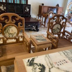 MM15 Bộ Bàn Ghế Móc Mỏ Gụ Mật 6 Món Hàng Mộng Thủng ( Anh Đại, Ninh Bình )