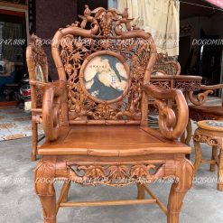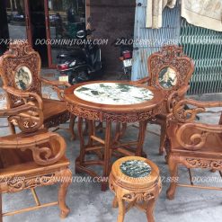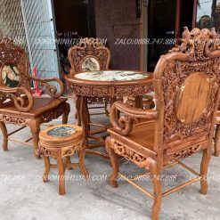 Bộ bàn Ghế Trúc kép Hàng Đục Tay Siêu Kỹ Đánh Chay Trần 7 Món Gỗ Gụ