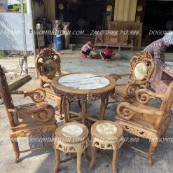 - Kích thước: Bàn ĐK 88cm cao 75cm, ghế rộng 60cm sâu 50cm cao 105cm, đôn ĐK 36cm cao 43cm
