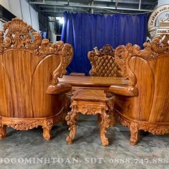 Bộ Bàn Ghế Hoàng Gia Cỡ Đại 10 Món Gỗ Gõ Đỏ Hàng Siêu VIP có kích thước khủng được làm rất tỉ mẩn, kỹ càng sẽ mang đến không gian phòng khách thêm khang trang, đẳng cấp đúng chất hoàng gia, quý tộc. Phải nói rằng, nếu ngôi nhà nào mà trưng diện bộ bàn ghế hoàng gia này thì không gian ngôi nhà đẹp hút mắt, mọi không gian, ngóc ngách trong nhà đều được tôn lên.