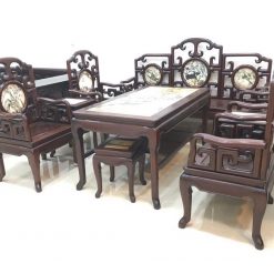Là một trong những dòng sản phẩm lối xưa đẹp sang trọng nhưng vẫn mang nét đẹp hiện đại tinh tế. Thế nên, bộ bàn ghế móc mỏ gỗ gụ 9 món vẫn được nhiều vị khách lựa chọn để trưng bày trong không gian phòng khách của gia đình. Với bộ bàn ghế móc này thì đòi hỏi không gian phòng khách gia đình của mình phải rộng lớn mới trưng bày hết 9 món của của bộ ghế. Hơn nữa đây là bộ ghế thể hiện cho sự sum vậy, dễ tạo tính kết nối khi trò chuyện giữa moị người với nhau thế nên nó đã trở thành món đồ gỗ phòng khách cực phẩm được nhiều gia chủ rước về. Dưới đây là một vài thông tin của bộ bàn ghế móc mỏ gỗ gụ 9 món: