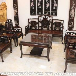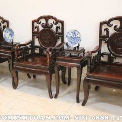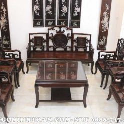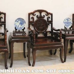 MM054 Triện móc gỗ trắc bàn vuông 8 món ( Anh Hiệp, Thái Bình )