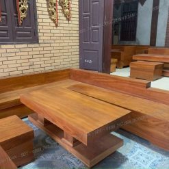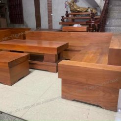 Bộ sản phẩm sofa phòng khách nguyên khối gỗ gõ đỏ cao cấp kiểu dáng đơn giản, thanh nhã. Phù hợp với gia chủ yêu thích vẻ đẹp tự nhiên, tối giản, không thích đục đẽo nhiều hoặc ngại việc lau chùi từng góc cạnh của bàn ghế. Sofa Hộp Nguyên Khối Chữ L Gỗ Gõ Đỏ kiểu dáng đơn giản khỏe khoán mà tiện lợi là lựa chọn yêu thích của rất nhiều gia đình hiện nay. Cùng Đồ Gỗ Minh Toàn tìm hiểu chi tiết về bộ sản phẩm này nhé!