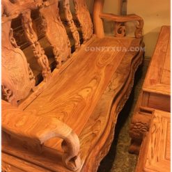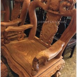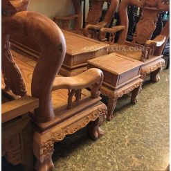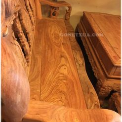Nếu bạn là một người yêu thích phong cách quyền lực, quyến rũ. Bạn yêu thích sự tinh tế tinh xảo thì những bộ bàn ghế được chạm khắc một cách tỉ mỉ với những đường nét quyến rũ biển hóa, uyển chuyển chuyển sẽ là một lựa chọn tuyệt vời khi trang hoàng cho phòng khách. Bộ bàn Ghế Minh Quốc Đào Tay 16 Gỗ Hương Đá Hàng Chọn Vân Đẹp 6 Món hứa hẹn sẽ là một sản phẩm làm hài lòng những vị khách khó tính nhất.