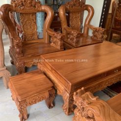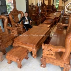 Nếu bạn là một người yêu thích phong cách quyền lực, quyến rũ. Bạn yêu thích sự tinh tế tinh xảo thì những bộ bàn ghế được chạm khắc một cách tỉ mỉ với những đường nét quyến rũ biển hóa, uyển chuyển chuyển sẽ là một lựa chọn tuyệt vời khi trang hoàng cho phòng khách. Bộ Nghê Bảo Đỉnh Gỗ Gõ Đỏ Mặt Tràn Tay 16 hứa hẹn sẽ là một sản phẩm làm hài lòng những vị khách khó tính nhất.