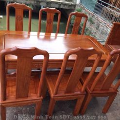 Mang kiểu dáng trẻ trung, hiện đại, bộ bàn ăn 6 ghế gỗ gõ đỏ đã chiếm được nhiều thiện cảm của khách hàng khi về đến đồ gỗ Minh Toàn. Bộ bàn 6 ghế gỗ hương được thiết kế rất chắc chắn, khỏe khoắn với độ rộng thoải mái sẽ thích hợp cho gia đình từ 4 – 6 thành viên trở nên.
