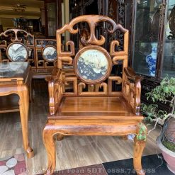 Và đây là hình ảnh 1 trong 4 chiếc ghế đơn nằm trong bộ bàn ghế móc mỏ gụ ta 9 món. Nhìn chiếc ghế sở hữu kiểu dáng mềm mại, điệu đa nhưng vẫn tôn lên sự khỏe khoắn, quý tộc. Đặc biệt sở hữu đường vân sọc đen vàng đan sen với nhau càng khiến cho chiếc ghế này trở nên thu hút sự chú ý của mọi người hơn.