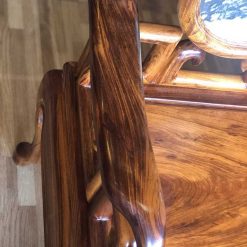 Và đây là một chiếc ghế đoản trong bộ bàn ghế móc mỏ gỗ gụ 9 món. Mặt ghế được tuyển chọn từ khối gỗ gụ dày dặn, cứng cáp với tuổi đời gỗ lâu năm mới cho lên những đường vân gỗ siêu vân, thớ gỗ mịn màng như thế. Ghế đoản ngoài tác dụng để sử dụng ngồi gia chủ có thể tận dụng nghỉ trưa vì nó sở hữu chiều dài chẳng khác chiếc giường mini tẹo nào.