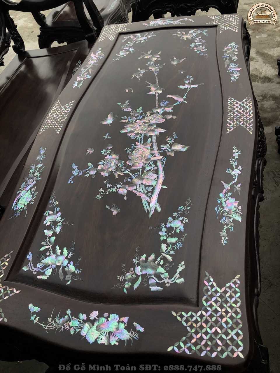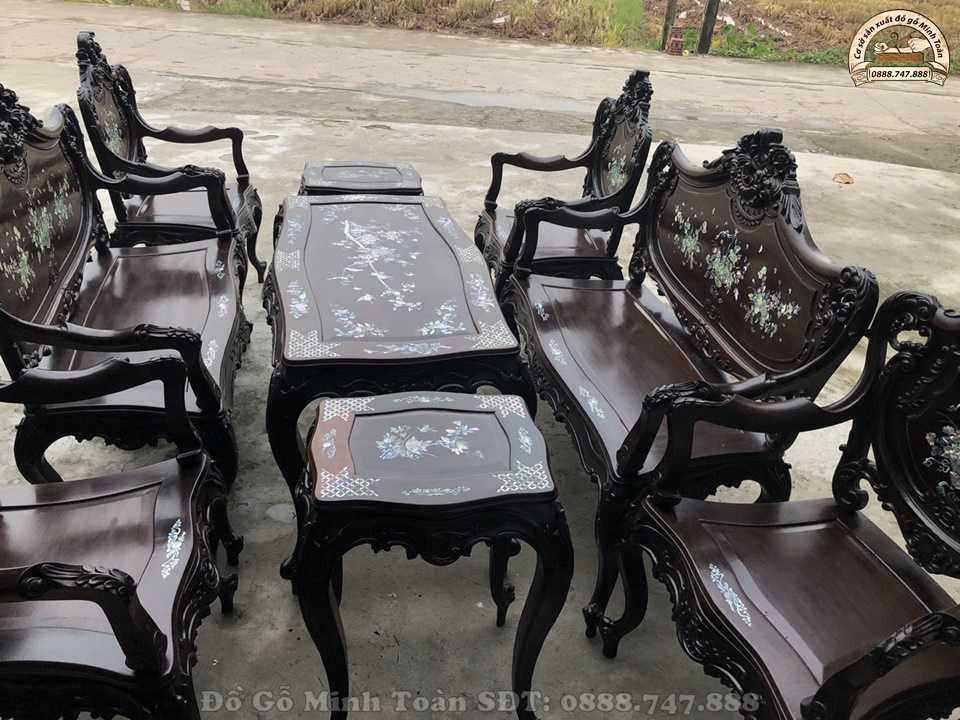 Bộ bàn ghế Louis khảm ốc lá tây theo phong cách Pháp sang trọng, có sự kết hợp độc đáo giữa cổ điển và hiện đại là bộ bàn ghế đẹp hiếm thấy. Bộ bàn ghế Louis phong cách Pháp có 9 món làm từ gỗ gụ, được khảm ốc tinh xảo đến từng tiểu tiết, sắc nét mềm mại trong từng góc cạnh, đường nét. Đây thực sự là một bộ bàn ghế đẹp, độc đáo, không những mang đến sự sang trọng, lịch lãm, quý phái cho không gian phòng khách của quý vị mà còn thể hiện sự tinh tế và đẳng cấp của chủ nhân.