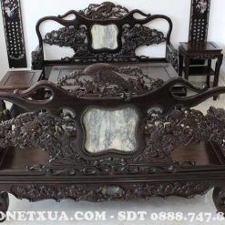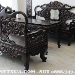 Bộ trường kỷ đục tùng hạc 3 món được nhiều gia đình lựa chọn vì kiểu dáng, màu sắc vô cùng sang trọng.