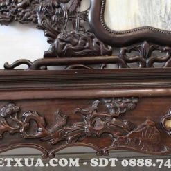 Trường kỷ có kích thước chuẩn, họa tiết mang nhiều ý nghĩa giáo dục hay trong cuộc sống. Và đó cũng là lý do mà bộ trường kỷ đục tùng hạc 3 món mới được ưa chuộng, lựa chọn trưng bày trong không gian sống
