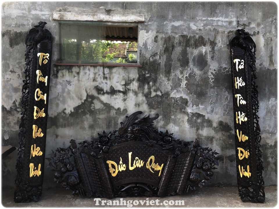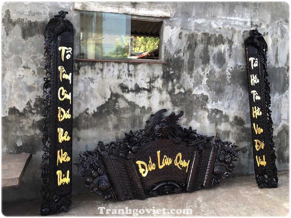 CT03 Cuốn thư câu đối thiếc vàng gỗ gụ cỡ 1m97 Hàng 8p Dày 4, chắp 4 ( Anh Sửu, Đắc-nông)