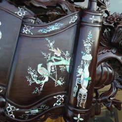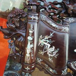 Những hoa văn họa tiết trên bộ cuốn thư câu đối được điêu khắc tinh tế sắc nét, mẫu ốc được khảm tỉ mỉ sắc nét làm tăng thêm giá trị cao của bộ cuốn thư đẳng cấp này.