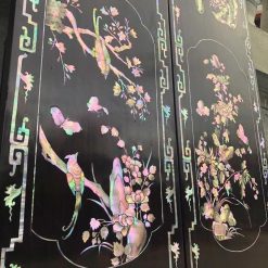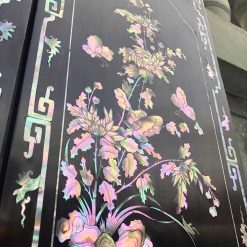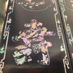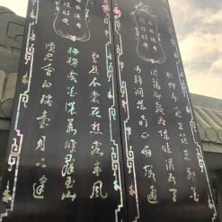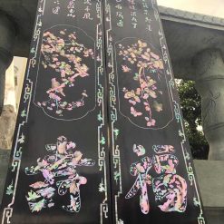 Những hoa văn họa tiết trên bộ cuốn thư câu đối được điêu khắc tinh tế sắc nét, mẫu ốc được khảm tỉ mỉ sắc nét làm tăng thêm giá trị cao của bộ cuốn thư đẳng cấp này.