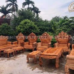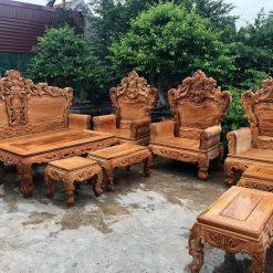Bộ bàn ghế hoàng gia gỗ gõ đỏ 6 món hàng đục tay kỹ ( Cô Sen, Hải Dương )
