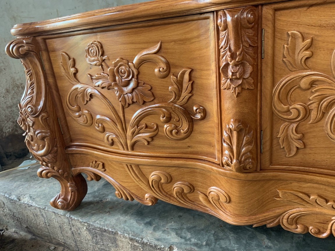 Một chiếc Kệ tivi louis gỗ gõ đỏ hàng dày cỡ 2m37 là 1 lựa chọn hoàn hảo cho phòng khách, không chỉ làm đẹp thêm cho không gian ngôi nhà mà còn thể hiện đẳng cấp của gia chủ.