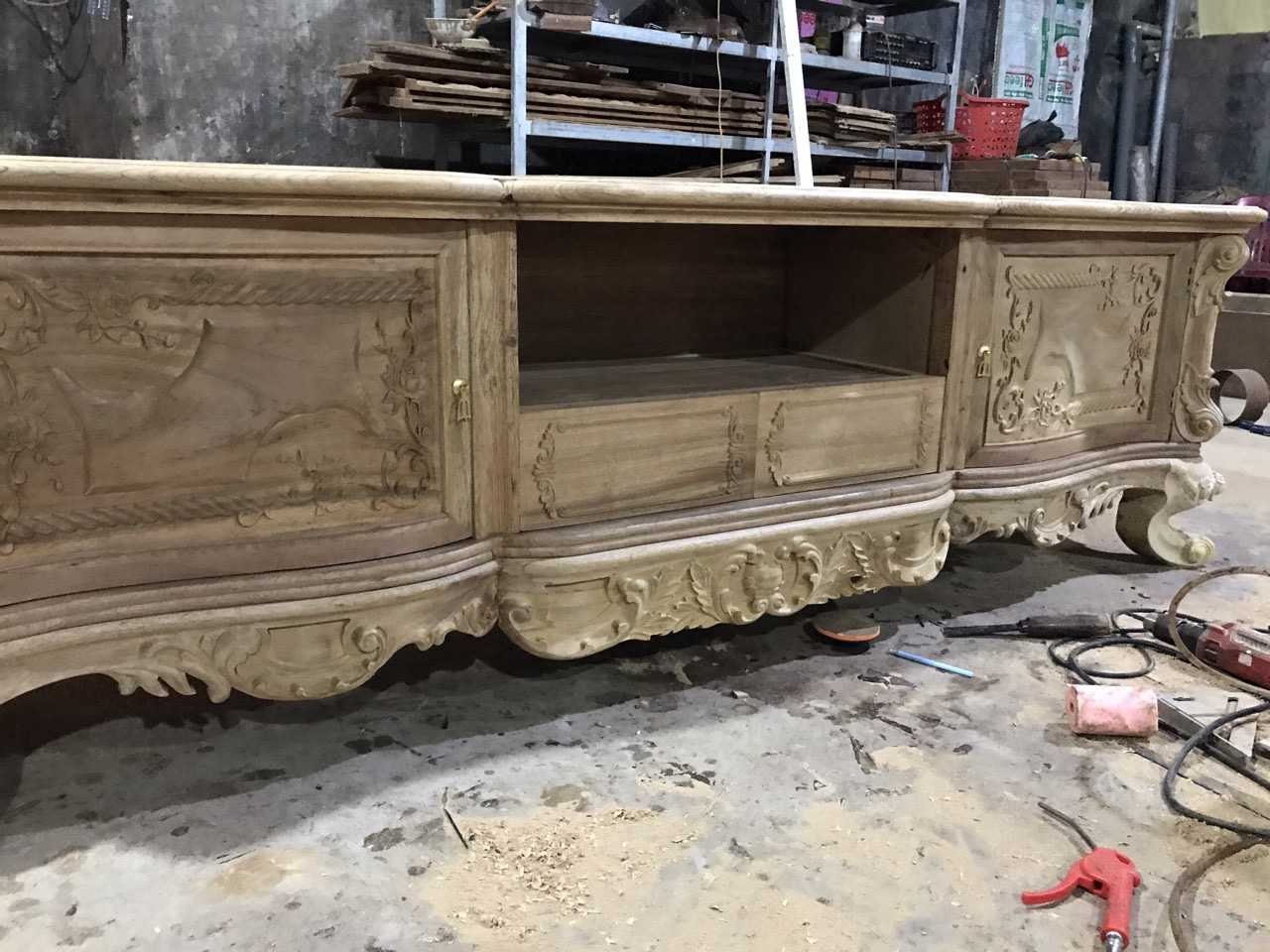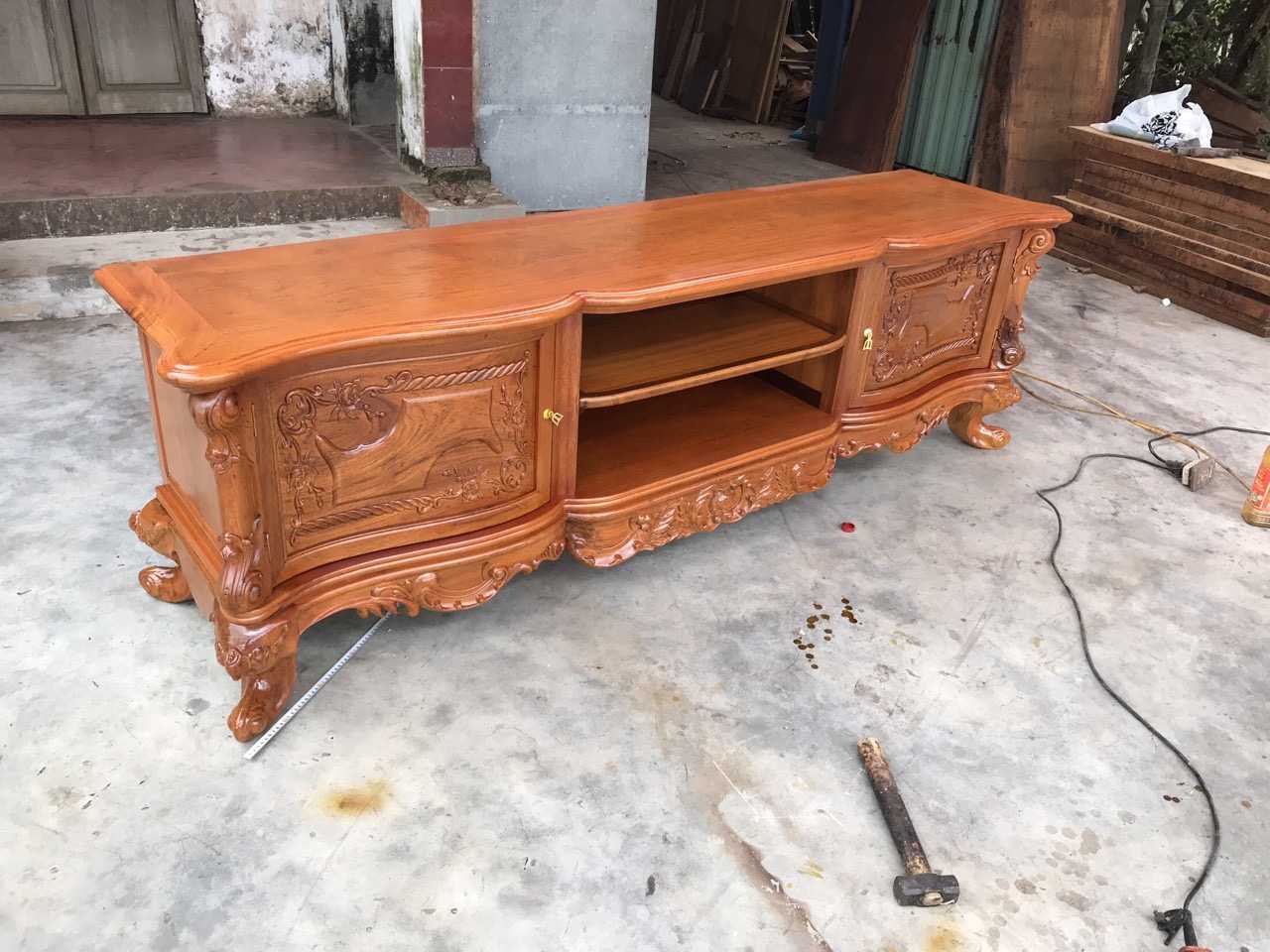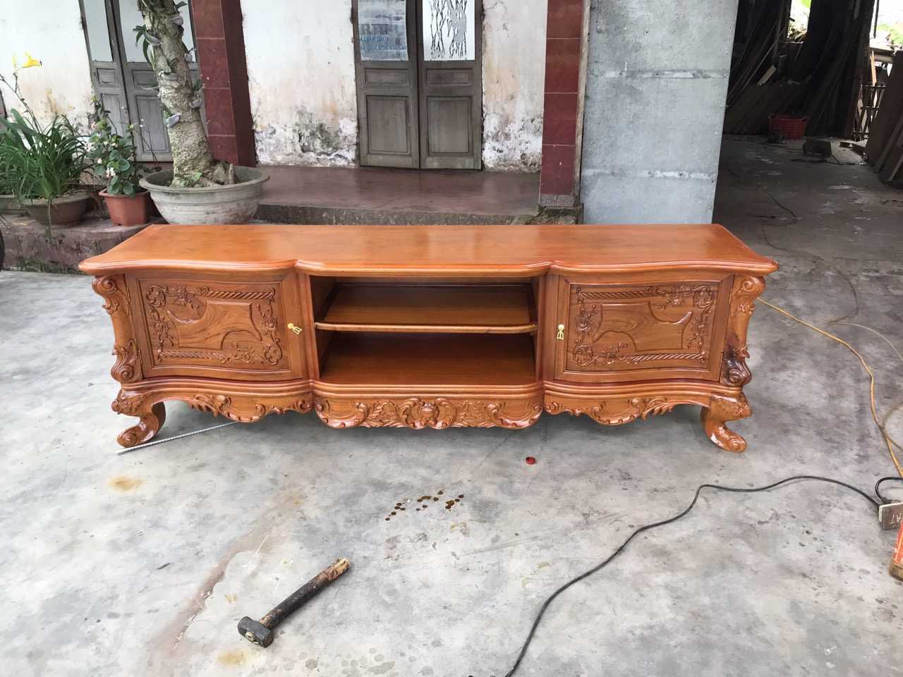 KT32 Kệ tivi louis gỗ Gõ Gụ 2m17 Cánh Cong dày dặn Màu sáng ( Chú Thức, Phú Thọ )