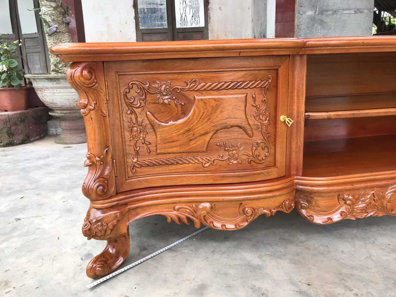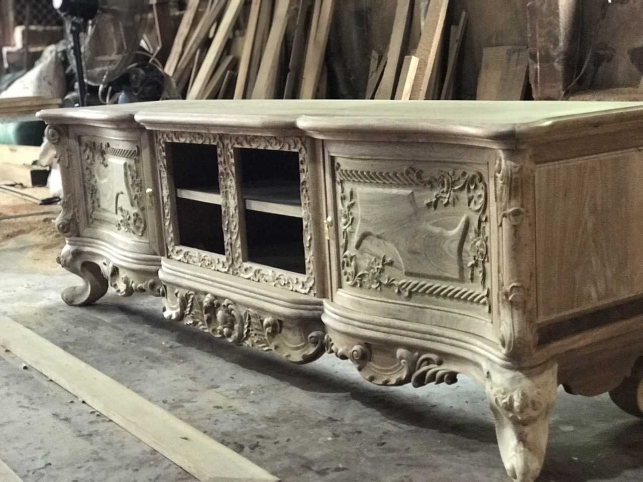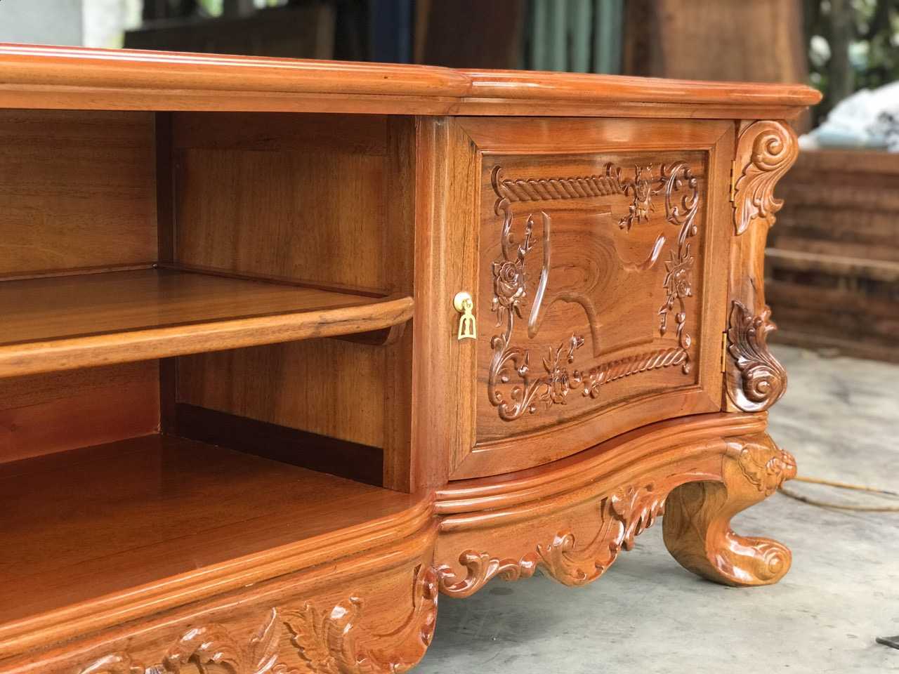 KT32 Kệ tivi louis gỗ Gõ Gụ 2m17 Cánh Cong dày dặn Màu sáng ( Chú Thức, Phú Thọ )