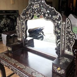 Những hình ảnh sau sẽ cho mọi người cảm nhận được toàn bộ về chiếc bàn phấn mang phong cách cổ điển, khảm ốc tỉ mỉ , sắc nét. Ưu điểm của kiểu bàn phấn này là giúp đáp ứng được tất cả những nhu cầu về chất lượng, công năng sử dụng cũng như yếu tố về nhu cầu thẩm mỹ.