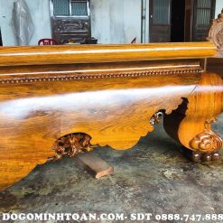 Còn đây là mặt sập chính diện thưa quý khách được người thợ làm rất chỉ chu và vẹn toàn nhẵn bóng. Tuy không chạm khắc cầu kỳ tinh xảo nhưng quây sập luôn hiện lên những đường vân gỗ sáng bóng, mịn màng nhìn rất bắt mắt.