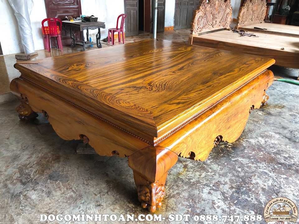 Đây là mặt sập trơn gỗ cẩm vàng thưa quý khách. Mặt sập đã được cơ sở đô gỗ Minh Toàn chế tác vô cùng tỉ mỉ với độ chà nhám sạch sẽ mặt sập bóng như gương soi. Điểm hút của sập trơn gỗ cẩm vàng là sở hữu những đường vân gỗ nhìn khá độc lạ và cuốn hút với độ xoắn như ma trận. Càng nhìn khiến ta càng cảm thấy bộ sập này có sức hút mãnh liệt và đem đến sự ảo diệu khiến người chơi phải trầm trồ và tò mò.