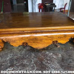 Sập trơn gỗ cẩm vàng là một trong những bộ sập gụ phổ biến hiện nay hay được trưng diện tại không gian phòng khách, phòng thờ. Thường thì sập vắt vải khảm ốc hay được kết hợp với tủ chè và trưng bày thêm nhiều món đồ phụ kiện khác như: tranh gỗ, câu đối, lộc bình sẽ tạo được không gian thanh tịnh, ấm áp, gần gũi nhưng vẫn toát lên được sự sang trọng, lộng lẫy đậm chất phong cách quý tộc, vương giả.