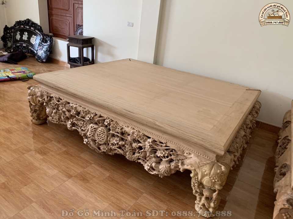 Sập Cây Mai 1m8 x 2m2 Gụ Gia lai Đục siêu nét