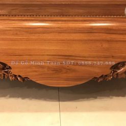 Vì là sập trơn nên quây sập không được trạm chổ nhiều họa tiết hoa văn mà chỉ điểm thêm một vài hình ảnh trim chĩ ở bên dưới quây sập.