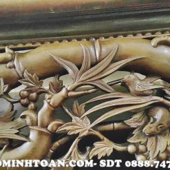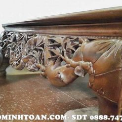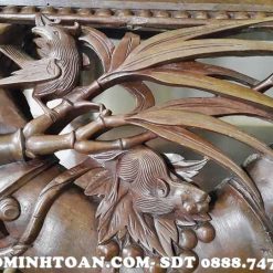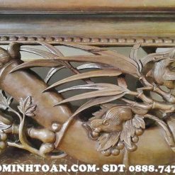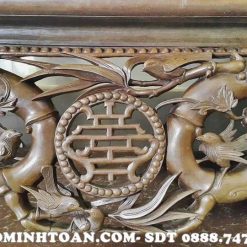 Đây là mẫu sập gụ ngũ phúc đẹp nhất tại làng nghề Hải Minh với hình ảnh trúc và chữ phúc là hình ảnh chính mang ý nghĩa chính trực, quân từ cũng như phúc lộc cho gia chủ.