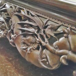 Sập trúc đục chữ phúc gỗ gụ mặt 3 lá đục tam diện nên nhìn rất đẹp. Tất cả các hình ảnh trên quây sập đều được nghệ nhân xưa tái hiện lại thân cây trúc một cách sinh động có hồn nhất. Thân cây trên quây sập được nghệ nhân làm mượt mà, uyển chuyển uốn lượn tạo độ mềm mại, thanh tú cho bộ sập.
