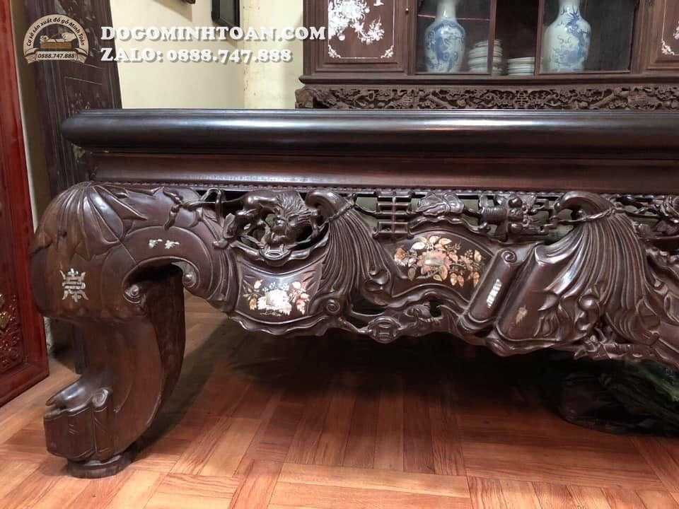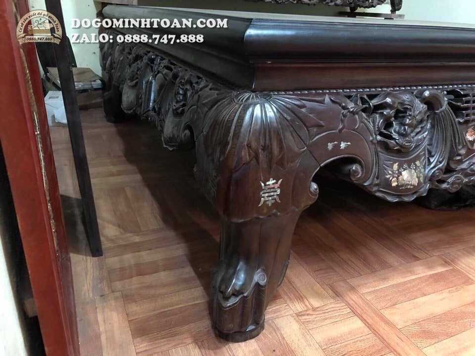 Đây là hình ảnh chân sập được thiết kế với độ cao vừa phải. Ở đây chân sập cũng được nghệ nhân xưa chạm khắc chữ Phúc một cách tinh anh, nhẹ nhàng khiến cho bộ sập trở nên mềm mại hơn.