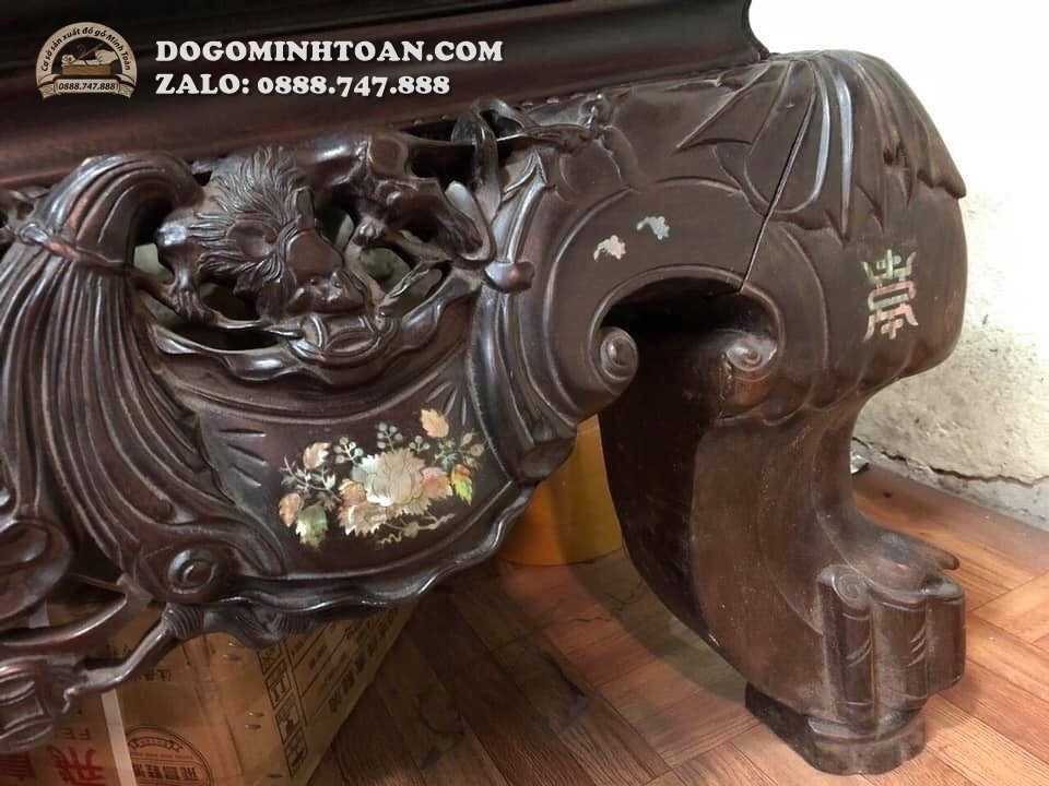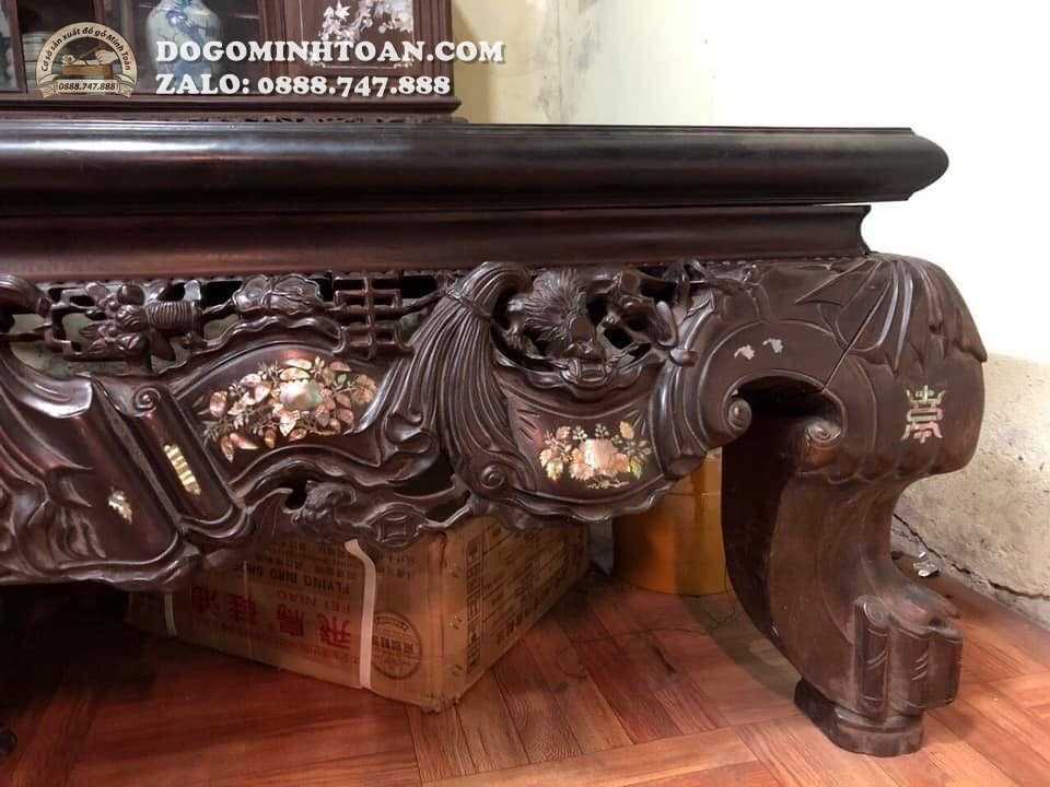 Chân sập được làm đế chắc chắn với độ uốn cong vào và phình to ra ở đầu nhìn rất hoàn mỹ, chắc chắn và tạo cảm giác mượt mà chứ không bị gò bó. Chính sự thiết kế mẫu chân sập như thế khiển bộ sập gụ khảm ốc vắt vải trở nên chu viên hơn và không bị gò bó hay khô cứng.