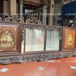 - Tên sản phẩm: Tủ Chè Khảm Mai treo giá rẻ Gỗ Gụ Mật