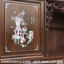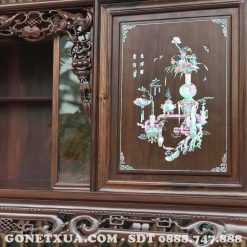 Tích đồ thư được khảm trên cánh tủ cực kỳ trau truốt, nét khảm rất tinh xảo