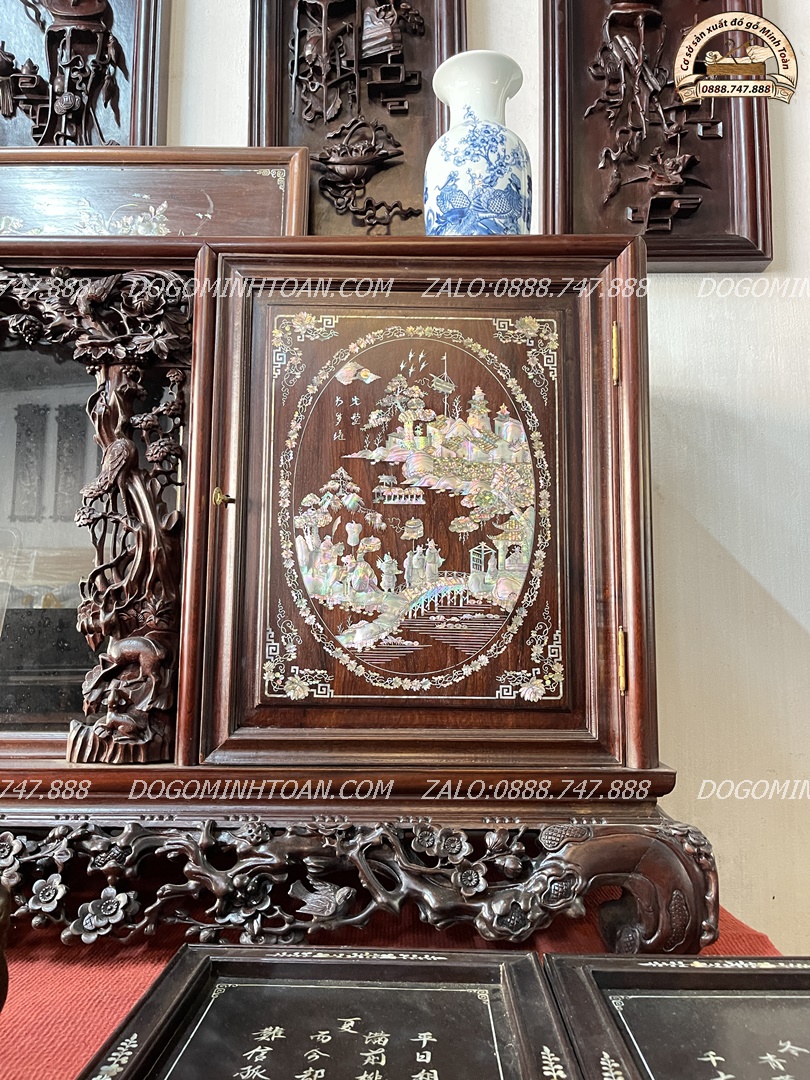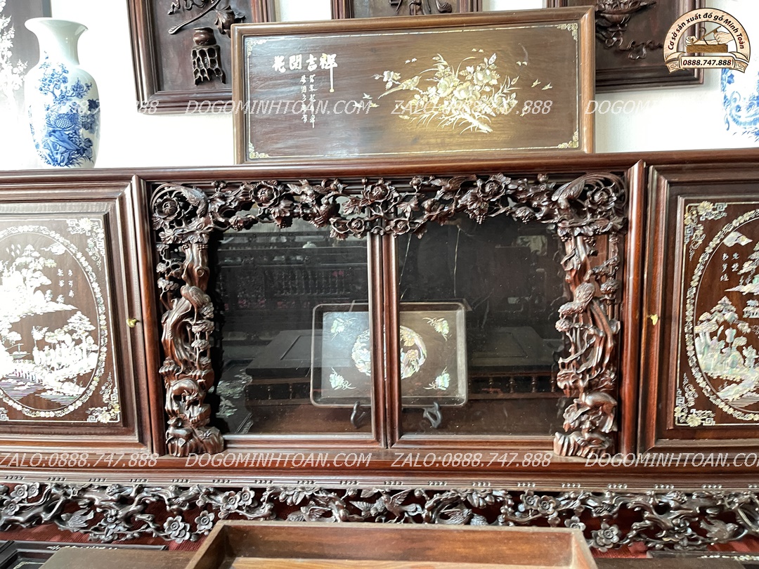 tủ chè khảm ốc tích văn vương cầu hiền giá rẻ gỗ gụ mật