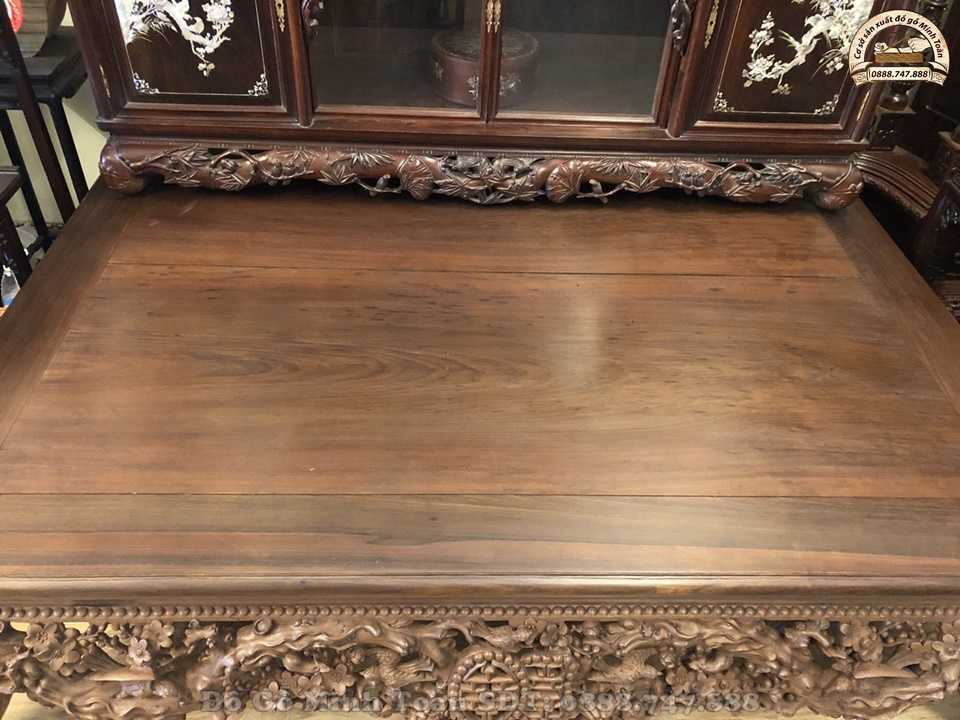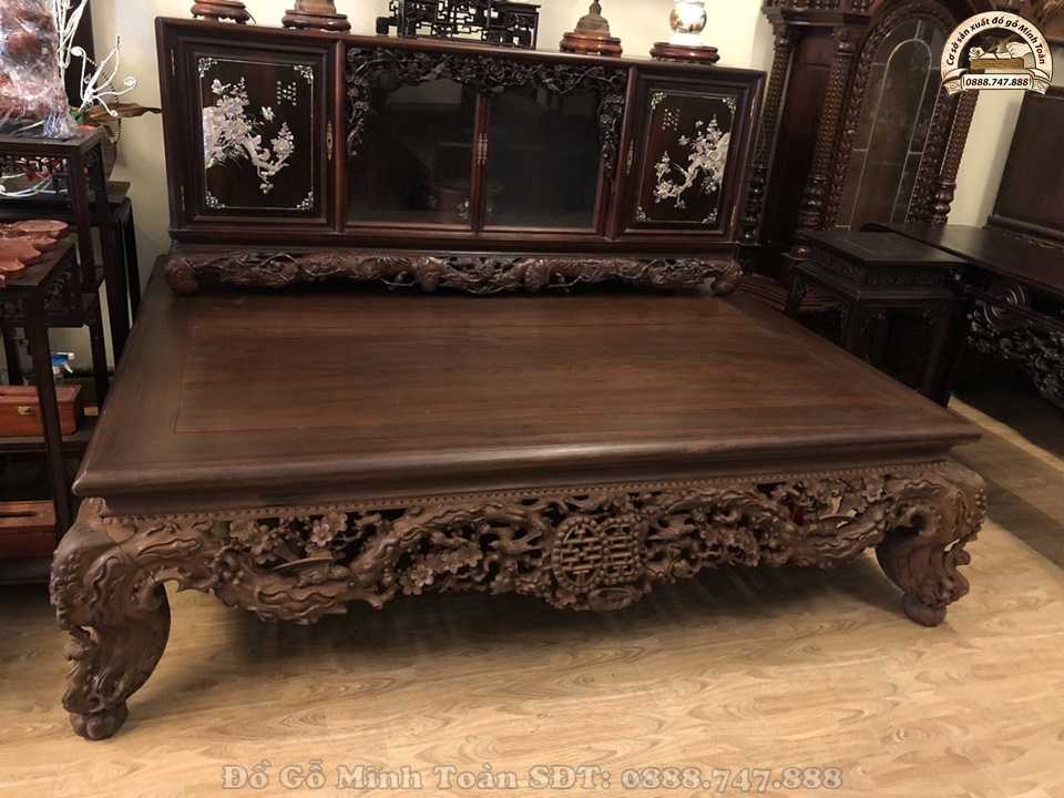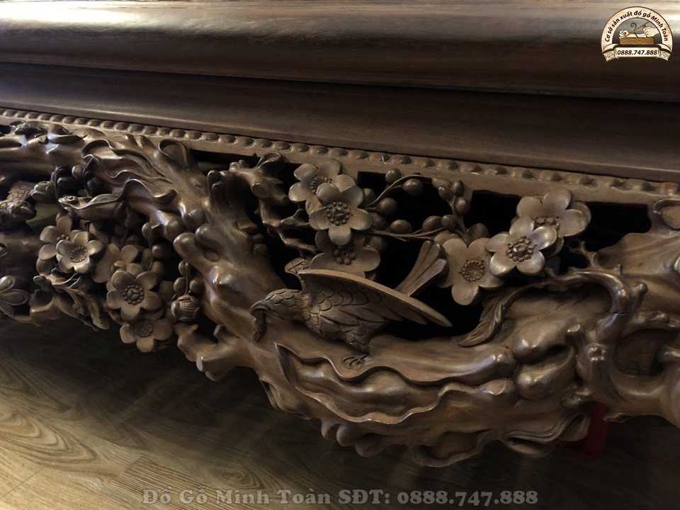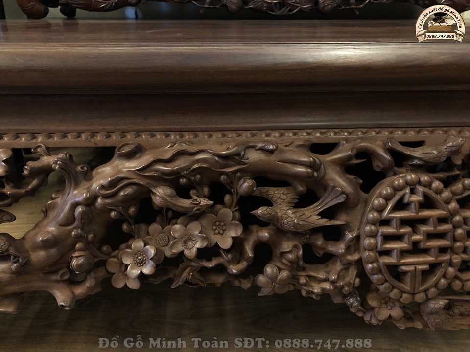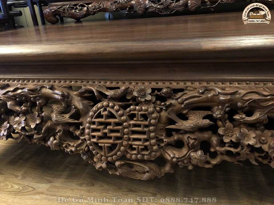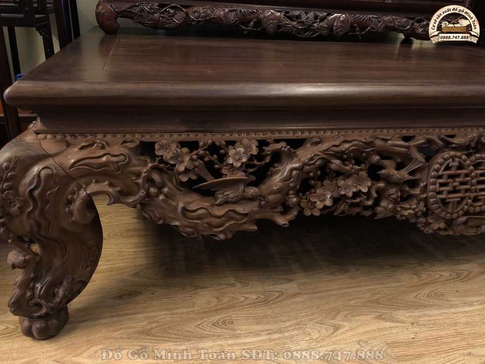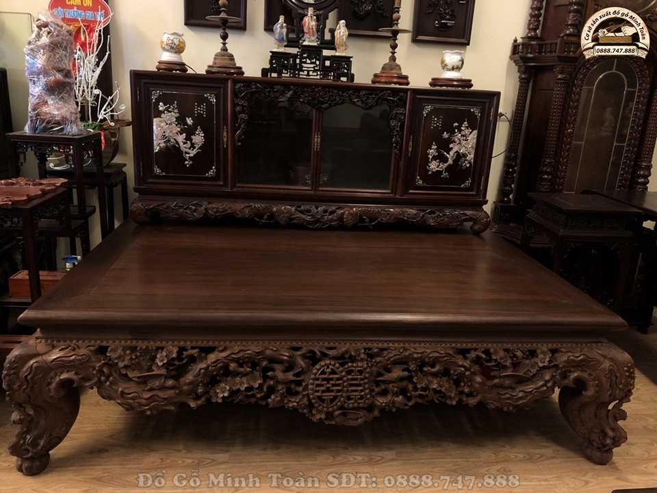 Hiện nay, sập gụ tủ chè vẫn là một trong những combo sập gụ kết hợp ăn ý với nhau nhất. Thường combo này sẽ được trang trí trong không gian nhà không những mang đến vẻ đẹp cao sang mà nó còn mang đến sự sung túc đủ đầy cho gia chủ. Và như bạn biết đấy, sập gụ mai điểu này được nghệ nhân Minh Toàn làm rất chu viên tỉ mỉ nên dáng sập nhìn rất khôn và đẹp. Nhìn vào chiếc sập ta có cảm giác nhẹ thênh và bình an.