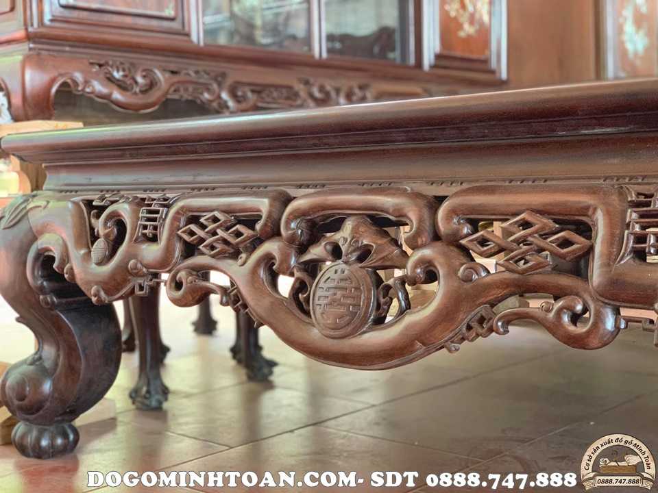 Còn đây là quây sập thưa quý khách. Quây sập được đục hình ảnh chữ phúc và dơi ngậm chữ phúc với ý nghĩa hạnh phúc, ấm no viên mãn cho gia đình nào sở hữu được bộ sập gụ này.